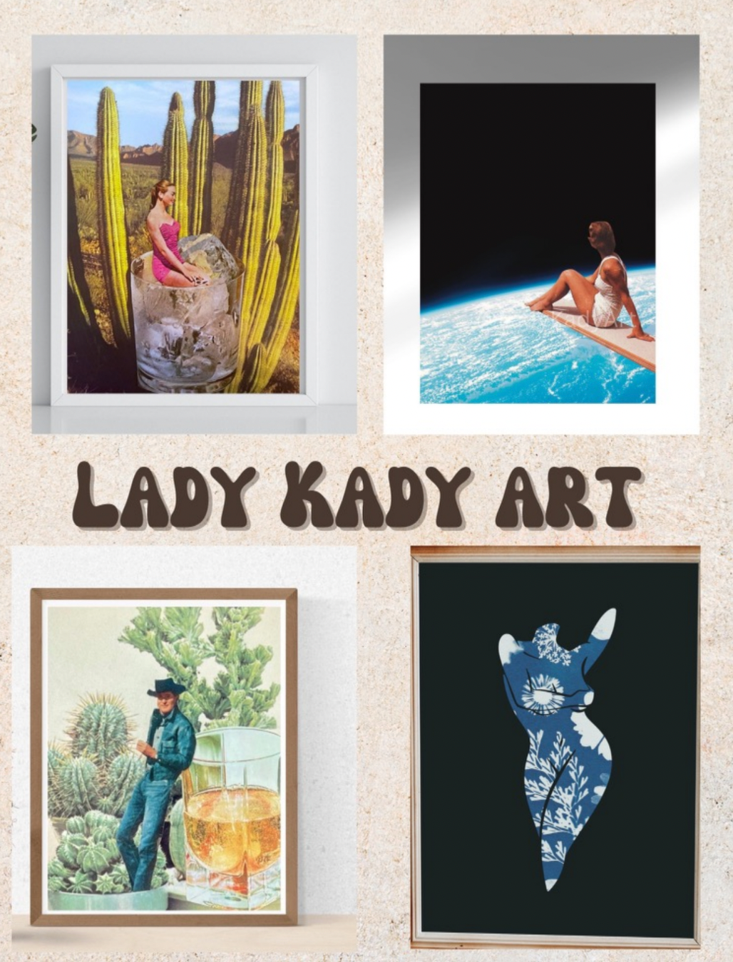 Kady of LadyKadyArt creates unique, often-surreal collage art using materials from salvaged vintage magazines and books.