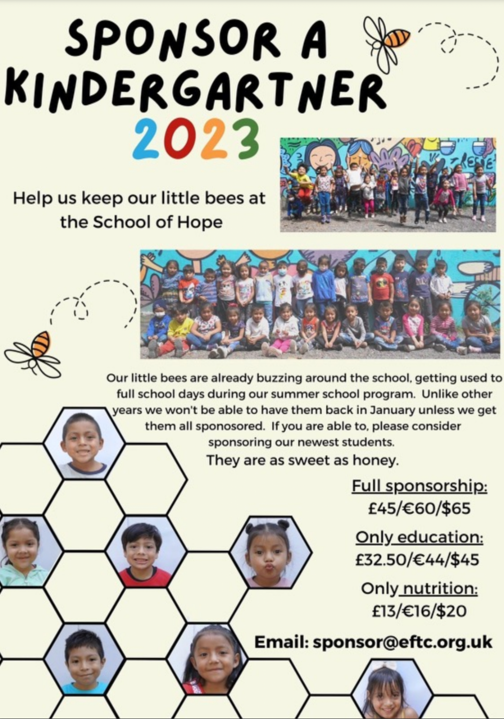 Due to economic and hurricane distress, Education for the Children needs extra help this year sponsoring their incoming class of kindergartners.